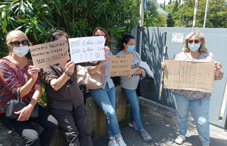 A Nice, c’est devant le rectorat qu’une trentaine d’AESH se sont rassemblées.